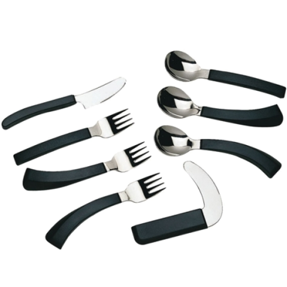 Het Amefa bestek is verkrijgbaar in een gebogen en een rechte variant. Het handvat van het Amefa bestek is verkrijgbaar in een gebogen, taps toelopend en recht handvat. Hierdoor is er voor iedereen met een beperkte hand- en polsfunctie een geschikt bestek van Amefa.
