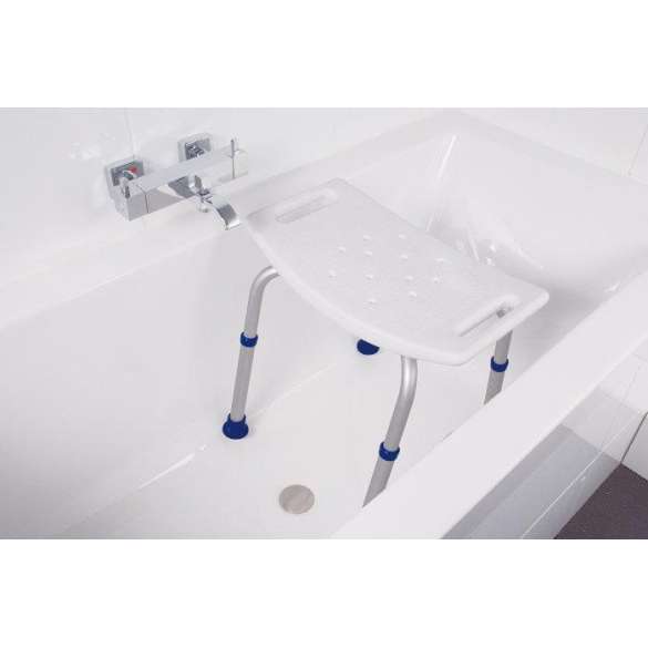 Het badzitje heeft aluminium poten en een kunststof zitting.