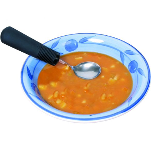 De kop van de Good Grips soeplepel is buigbaar. Hierdoor kunt u de kop van de lepel in de gewenste positie draaien om zo het brengen van de lepel naar uw mond te vergemakkelijken.