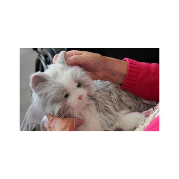 Reageert, beweegt, spint en miauwt als een echte kat. Ideaal gezelschapsdier voor ouderen.
