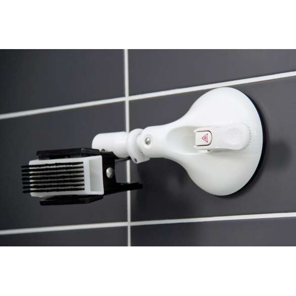 Door de zuignap middels het gepatenteerde systeem aan de muur te bevestigen kunt u gemakkelijk uw apparaten tussen de klemmen plaatsen. De klemmen blijven vervolgens stevig op hun plek zitten en zijn vervolgens gemakkelijk te bedienen.