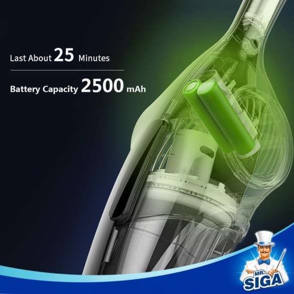 De Mr. Siga Mop 2-in-1 draadloze stofzuiger en dweil is een unieke combinatie tussen een stofzuiger en een dweil. Het grote voordeel van dit product is dat u beide handelingen tegelijkertijd kunt uitvoeren. Dit wilt zeggen dat u niet eerst hoeft te stofzuigen en vervolgens alles moet dweilen. Daarnaast is de Mr. Siga Mop draadloos waardoor u geen rekening houdt te houden met het bereik van het snoer.
